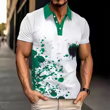 2024 Summer New Short-sleeved Polo Shirt Painted Print Casual T-shirt Lapel button fashion Top Top men’s Clothing