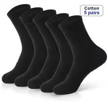 Mens Moisture Wicking Outdoor Hiking Work Cotton Socks Compression Cushion Crew Socks Leisure Men Black Socks 5 Pairs